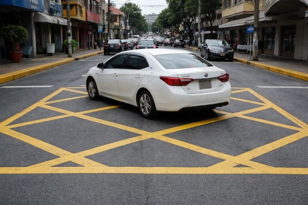 La zona 4 de la Ciudad de Guatemala es escenario de un nuevo plan piloto que busca reducir el congestionamiento en horas pico mediante la implementación de bahías antibloqueo. Estas cuadrículas amarillas pintadas en los cruces indican el espacio que debe mantenerse libre para no interrumpir la circulación.